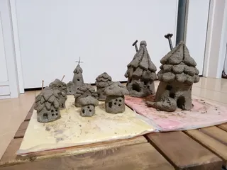 つちだまのおうち達🏠✨ ハンドメイドのイベントのつちだまWSで作ってきました🫡 小さい🏠は一輪挿し🌼になってます(^^)中くらいの🏠はオブジェに😚一応ライトも入れられます🫡今回は色つけは自宅でやります(^^) さぁー皆さん、屋根の色、何色がいいですかぁー?😀