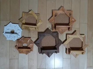 例の壁掛け🛠増産終了!!! やったどー!!!イベント用の壁掛け完成したどー!!! もう一生分作ったわ🤣🤣🤣L ウォルナットL ライトオークL メープルМは撮り忘れた。S ライトオークS ホワイト👇こげな感じで使って頂けます🙇