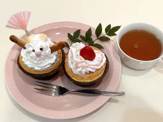 シフォン作り体験🍓 アンデルセン公園にまた来てます(^∇^)子供さん向けのクッキング体験ですが、大人でもオッケー👌ということで、参加しました❣️チョコペン、真っ直ぐ描けなくてグダグダになりました😆1月の体験ということで、扇子🪭とナンテンの飾り付き🍀