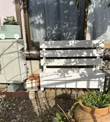 今年初めての作品 今年初めてのWSでプランターカバーを作りました。思っていたより大きい😱65センチのプランターが入るということで作ることにしたのですが、感じていたより大きくて、さてどこに置こうか⁈迷いに迷いました。そんなに広くない庭ですからこれを置いたら結構な圧迫感😔…… 吐き出し窓の前に小さい花壇を作