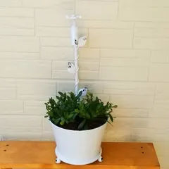 Kirara「キララ」の寄せ植え 蛇口付きブリキの鉢に寄せ植えしましたkirara「キララ」の白と黄色の2株を植えました😊まだ蕾ですが、いっぱい咲いたらいいな🎶
