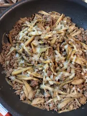 ゴボウとミンチ肉の炒め煮