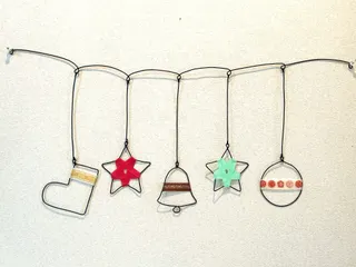 クリスマスガーランド🎄🔔⭐️ マスキングテープとワイヤーを使ってXmasガーランド🎄を作りました❄️ワイヤーでまずは好みの形をつくり、その後マステで飾りつけ✨❣️ワイヤーは100均の1.6ミリ使用。マステは幅1センチ〜2センチのものを使用しました。各オーナメントは縦横約10センチの大きさです🍀