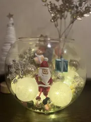 クリスマス🎄の飾りを作ってみました。以前使っていた水槽を器にライトを入れて夜の玄関を彩ります🎅🎄😊🎶