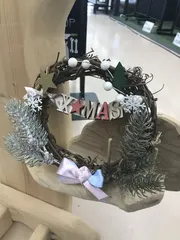 クリスマスイベント クリスマスイベントに行って来ました💕初めてクリスマスリースを作りました。グルーガンで色々な小物を取り付けたんですが、位置決めがなかなか難しくてセンスが問われるんですね🥲
