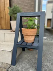 フラワースタンド設置! 1才の娘記念樹🎄ブンゲンストウヒ(もみの木)様に作ったつもりが、、、高さが微妙にたらず🫥奥に少し映ってます。 シルバー系の葉なので、少しかっこいいNAVYでペイントしました。 代わりに実家のアナベル(紫陽花)を株分けしてきて只今成長中のものを設置しました♪ 以外とばっち