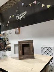 フラワーフレーム 2回目のフラワーフレームを作って来ました。 前回は、外に飾る用だったので今回は、家の中に飾りたいなと思いました。 色をかなり悩みまして行く前までは春らしいブルーが良いなって思いましたが、作ってる最中にブラウンがピンときてウォールナットにしてみました😅 どんな感じに飾ろう