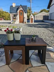 ミニベンチのアレンジ🎶 ロングベンチの2色使いが素敵なので、ミニベンチも2色使いしたくて、2つ作って座面を交換しました🎶ビスを打たずにお持ち帰り座面がウォルナットで足がブラック🤎🖤大好きな組み合わせ😍座面がブラック足がウォルナット🖤🤎これは男前です!mahalo♡