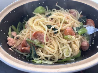■材料 パスタポットパスタ 80g位明太子 一切れバター 50グラム位キャベツ、ちぢみ小松菜、玉ねぎ 適量ウインナー 2本クレージーソルト水200ml■調理時間600W 6分 パスタが少し太いので600W4分 調味料全部材料を入れて■作り方水とパスタを入れて6分。調味料全部入れて4分。時間になった