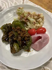 ピーマン丸ごと焼いて甘タレでいただく。 ピーマンは種が入ったまま、あなも開けずに、まること、フライヤーの中へ投入。 オリーブオイルを回しかけておく。 180度設定で表10分、裏側10分。 タイマーでそばを離れてもオッケーです。 両面焼けたら、すぐとりだして、すぐボールに入れ、うえから甘だれ大3を回し入れて、混ぜ混ぜしたら完成!