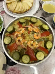 フライパンで作るパエリア 25センチのフライパンで作りました。ワイワイ大勢集まる時には、重宝しますね。 材料 もも肉1枚塩麹で漬けておいたもの えび 8匹 A ピーマン一個、赤ピーマン一個、ズッキィーニー一本(飾り用の輪切り) トマト 一個ざく切り にんにく 一片 玉ねぎ 二分