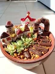 ミニミニ🏠ピック🙌箱庭風!!! 100均の粘土で作った🏠ピックを箱庭風にしてみました🫡 材料はコレです👇学校までの道〜大きなアルパカがのぞいているよ〜🫣💦寝坊したら追っかけてきちゃうよ〜🏃💨