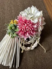 華やかな正月のリース 材料を見たとき、組み合わせが閃いて作ったのがこれ‼️かなり、華やかですね。