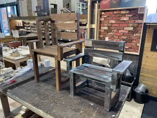 椅子が並ぶと圧巻❣️❣️ すぐ塗料買いに行けるの良いですね🤤💕 ダボ打ち練習しに来たんです!の切り替え好きですー😂❤️ 一日お疲れ様でした❣️