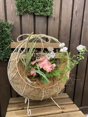月型メッシュプランターの寄せ植え 前から形が可愛くてこれで一度寄せ植えしたいなあと思っていた所、丁度グリーンWSがある事を知り、早速予約❣️作って来ました。これから花がどんどん増えて豪華になるらしいです。今から楽しみです。ヾ(๑╹◡╹)ノ"🤗