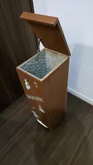 WS作品をアレンジ♪(ペットシーツストッカー♪②_step2) ステー天開用を取り付けました♪蓋を開けた時に、バタン!って向こう側に倒れる反動で蝶番のネジが緩んでくるんじゃないかなーって気になって1個目には取り付けてたステーを、ようやく2個目に取り付けました🤭
