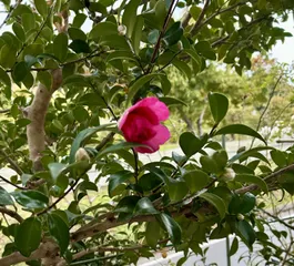 開花第一号 今年も山茶花が咲き始めました。少し早くない?蕾はたくさんついるので次々と咲きそうですが…先日蕾が出てきたクリスマスローズといい、なんか早くない?と思ってしまいました。