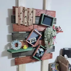 これまた板のリメイクです。woodは、ビスを取ったら再度使うことができるので気分を変えたい時にピッタリです。時計作ったり、デニムリース、アートチックなフォトフレーム。私の好きなものの空間❤●黒色とボルドー色の1✕4、ちょっと足りないね。●ARTチックなデニムの何かを作りたい✨