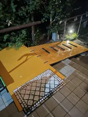し身体障害の母がデイサービスに通う為にコンクリート型枠用コンパネ2枚でスロープを作成した。雨に強いらしいので期待してます。