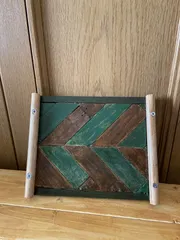 端材で作ったヘリンボーンカフェトレイ 端材がたくさんあるので切って組み合わせてヘリンボーンにしてペイント、取っ手をつけました😉🎶敢えて、ジャンク風にしています。 ロハスに出します。