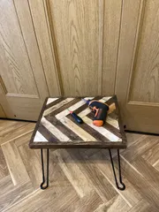 端材がたくさんあるので切って組み合わせてヘリンボーンにしてペイント、取っ手をつけました😉🎶敢えて、ジャンク風にしています。 ロハスに出します。