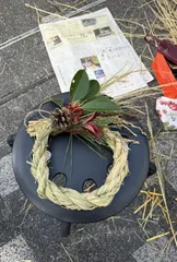 しめ縄作り 昨日立ち寄ったオーガニックマルシェでしめ縄作りに参加しました。稲束をよってよってしめ縄に。リースにして稲穂や飾りもつけました。もうひとつできる量の稲束ももらったので家で作って二重にしたいと思います!
