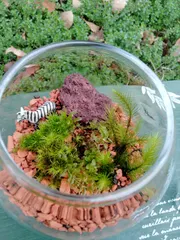 苔テラリウム イベントにて 昨日に引き続き。茨城県笠間のボタニカルライフというイベントで苔テラリウムを作ってきました☺️と言っても私は苔をのせるだけなんですけど、この後先生の手直しが入っています🤣左は去年の同作品。上手に管理すればこのままで3年育てられるようです。左はちょうど一年目👍 お手入れ頑張ります💪