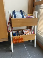 室内植物スタンド2段 愛犬チョコのお散歩道具とドックフード、おやつを入れました🐶 以前はちょっとした棚に置いていたのですが、これに変えたら玄関もスッキリ🤗サイズもピッタリ👍気になっているようです👀✨気に入ってくれたようです良かった(*ˊᵕˋ*)♥️
