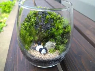 パンダさんが暮らす森🌳 溶岩石の穴にも植え付けてみました☺️