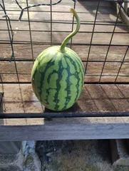 最後の収穫 昨日すいか畑が刈払機で刈込んだあと今朝畑に行ったら隣のカボチャの方ですいかを見つけました!これが最後の収穫義母の墓前に2個捧げました納骨の日にいただきます💕3個中1個は主人といただきます💕