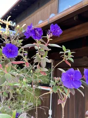 自宅庭の鉢植えの野牡丹 急に寒くなりましたね。野牡丹も風邪引かないかしらと気になりますが、気丈に咲いてくれてます。綺麗な🟣色でハッと二度見しましたよ。