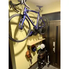 アレンジアワード2023【玄関プチリフォーム】 久しぶりにDIY完成です😄壁紙の貼り替え初挑戦しました😤20年物の汚れた壁紙を貼り替えてゴチャゴチャしていた所を整理し棚を付けました😀