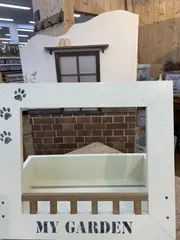 スタンド型フラワーフレーム 昨日、作ったフラワーフレームを玄関前に飾って見ました。 フレーム中には、多肉植物の寄せ植えの鉢を🌵 玄関前が明るくなりました✨