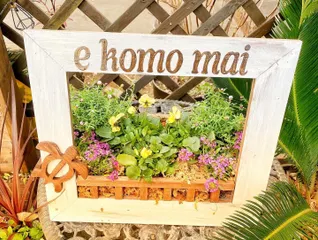 フラワーフレーム立体的でいいですよね💖皆さんそれぞれに個性が出て楽しいプランター🎶ハリ子さんらしいホヌちゃんとハワイロゴでひと足早くお花達も春めいてますね🥰💕