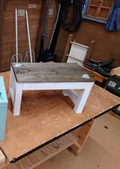 ミニベンチ(ワークショップ) 書斎のオットマンとして活用予定です(今回初めてピュアホアワイトを使用)