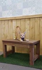 「ミニベンチ ロング」ワークショップ参加作品 「ミニベンチ ロング」ワークショップ参加作品今回も記念撮影モデルにねこちゃん登場✨とても安定感があり、しっかりしています。ねこちゃんがダッシュしてきて飛び乗っても、きっと大丈夫~(=^・ω・^)ノ☆︎人間も座り心地抜群ですヽ(´ω`)ノカインズ先生、ご一緒の皆様、ありがとうございました。