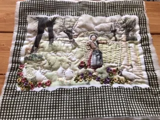 キルト作り 縁にレースつけて、先日のミニベンチのカバーに良いかなぁ