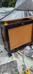 宅配BOXを残材で続編 Boxを塗装していたら何と無く気に入らない部分が出てきて一度解体そして微調整して脚部分に調整アジャスターを取付けて組込み蓋部分の蝶番や鍵の取付けそして内側に空箱時の鍵入れを作り表面をパテ埋めして磨き塗装したけど時間切れ、この後塗装を仕上げて出来上がりですが明日は雨が降らなければ完成になるかな?