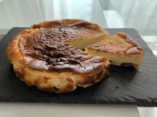 黒豆🫘入りバスク風チーズケーキ🧀 お正月の黒豆🫘が余っていたので、りくろーおじさんのチーズケーキをイメージして、混ぜて焼くだけバスク風チーズケーキに入れてみました😋 【材料と作り方】ケーキ型にクッキングシートを敷きます。(底、側面に貼り付けるようにしわがある状態でOK)クリームチーズ 🧀200g常温で柔らかくなったらゴムベ