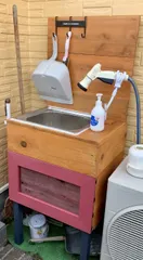 有難う御座います。 DIYをしていると外で洗い物したい時もあるので便利です、元は床置きのシンクがあったのですが低いから水跳ねが凄いし無駄に大きいかったのでガス屋さんの邪魔になっていました。玄関周りが広ければ良いのですが😭