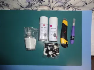 ステンシル練習 その1 道具 揃いました。クラフトナイフ、カッティングマット、アクリル塗料、スポンジポンポン。 結果 クラフトナイフは刃が薄すぎて0.2mm厚のクリアホルダ-を一発で切るには駄目でした。 私の場合 長年 使い慣れた普通カッタ-が使い勝手良いです。 それに カッティング時 や 転写時に 浮き上が