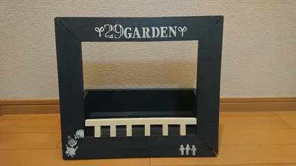 スタンド型フラワーフレームが 友達からホワイトボードが欲しいと言われ改造して作ってみました😊 裏側に端材をタッカーでとめて ダイソーのホワイトボード(200円)の枠を取り外しビスでとめました。 ペンを入れの缶も付けてみました😊 私のフラワーフレームちゃん