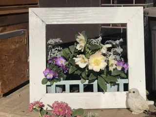 スタンド型フラワーフレーム スタンド型フラワーフレーム 皆さんの投稿見てどうしても作りたくなった作品です🎵 ノコギリでカットが上手くなかったようで角が合わずに隙間ができちゃったけど😅濃いめの色使いならあまり目立たない❓(笑)↑こういうのあまり気にしない人🤣(だからいつまでも上達しないのかも…) で