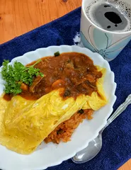 レトルト風に保存した「ナスのハヤシソース」でオムライスしました。