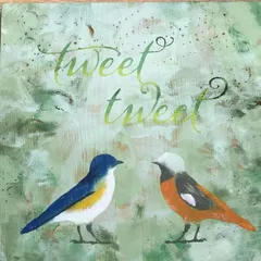 ミニサインボード♪ジョビ&ルリィ🐦 「さえずる男たち」ミニサインボード完成〜!妄想していたのとはかけ離れた色になったような気もするけど、これはまたいい感じかな☺️ 工房にて記念撮影〜 そしてご褒美ブリッコモーニング♪とても美味しゅうございました☺️ 一応、自宅にても記念