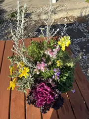 冬を彩る寄せ植え 今年最後のGWSに参加してきました。 去年使ったプランターを持っていけば値引きしてくれたのに、持ってくのを忘れてしまった😭 どうせなら、がんばって寄せ植えして並べようかな。😁💕 玄関前に置く予定だけど、まだクリスマスの寄せ植えが置いてあるから、クリスマスまでは、お庭に置