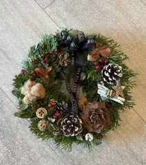畑と庭の産物リース ことしも我が家の畑と庭の産物でリースを作成、1個目。シダーローズと他の松ぼっくりはゴルフ場の方に分けていただきました。このリースはお知り合いの家にお届け。毎年楽しみにしてくれるので、作るのやめられないですね^ ^ 頑張って我が家用を作らなくちゃ😊