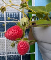 イチゴ お庭を見回りしていたらイチゴが🍓🍓✨なっていました。早速、イチゴ好きな息子にあげました✨美味しかったそうです。