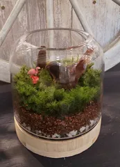 苔テラリウム🌱 昨日…green🌱WSにて苔テラリウム作りに参加✨3種類ある苔の中から“カモジコゲ”を選び沢山あるフィギュアの中からはピンク色が綺麗なフラミンゴ🦩可愛い❤️(≧▽≦)💕苔を植え付けてる時は参加者みんなが全集中で真剣に無言状態…(^。^;)昨日の私はあまり考えられなくて石入れから苔もチマチマではなくな