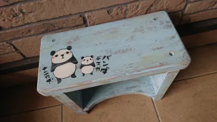 パンダ🐼のステンシル可愛い💕💕💕リメイクした椅子、使うのが楽しくなりますね‼️